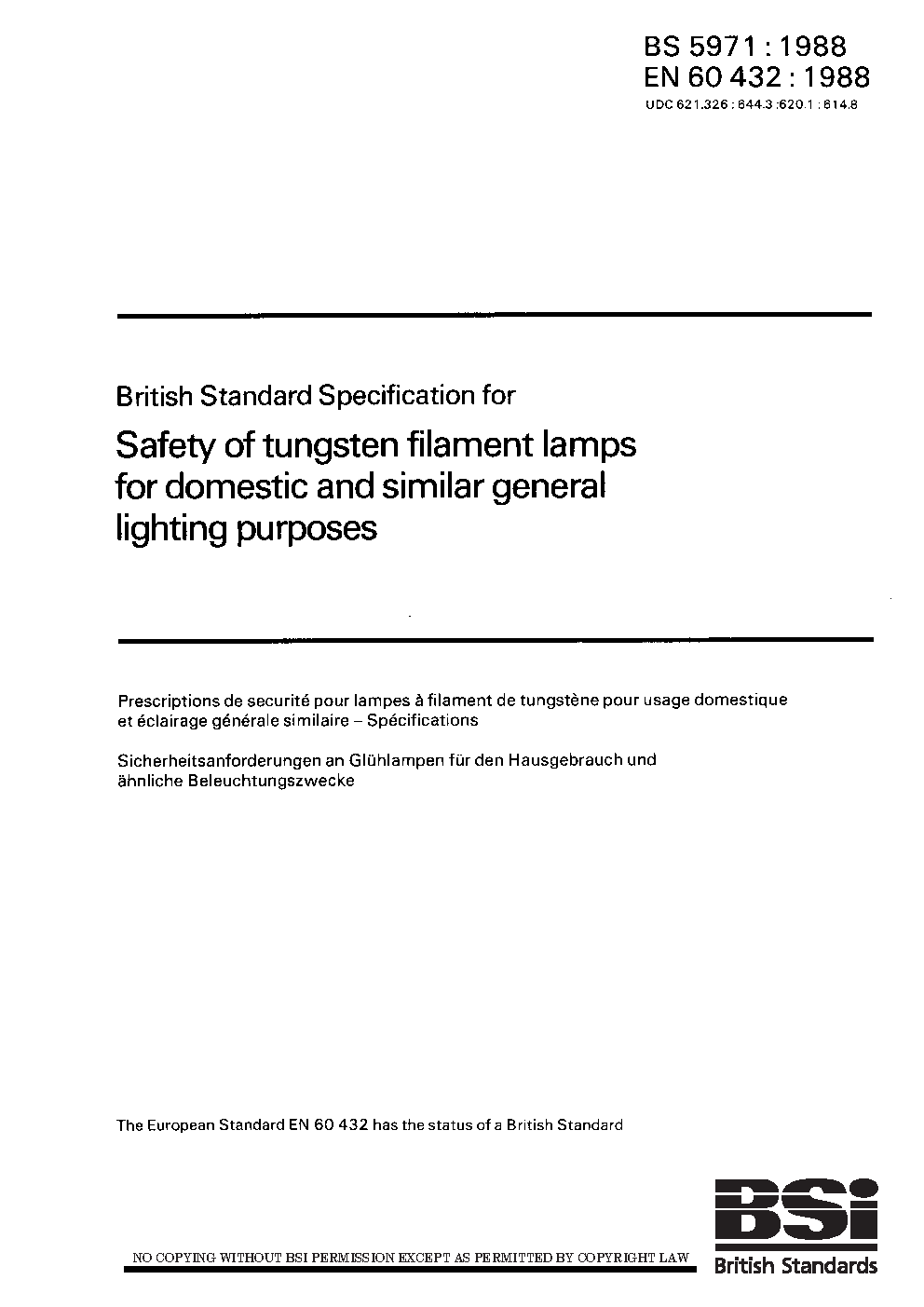 Specification for safety of tungsten filament lamps for domestic and similar general lighting purposes