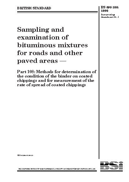 Sampling and examination of bituminous mixtures for roads other paved areas Methods determination the condition binder on coated chippings measurement rate spread