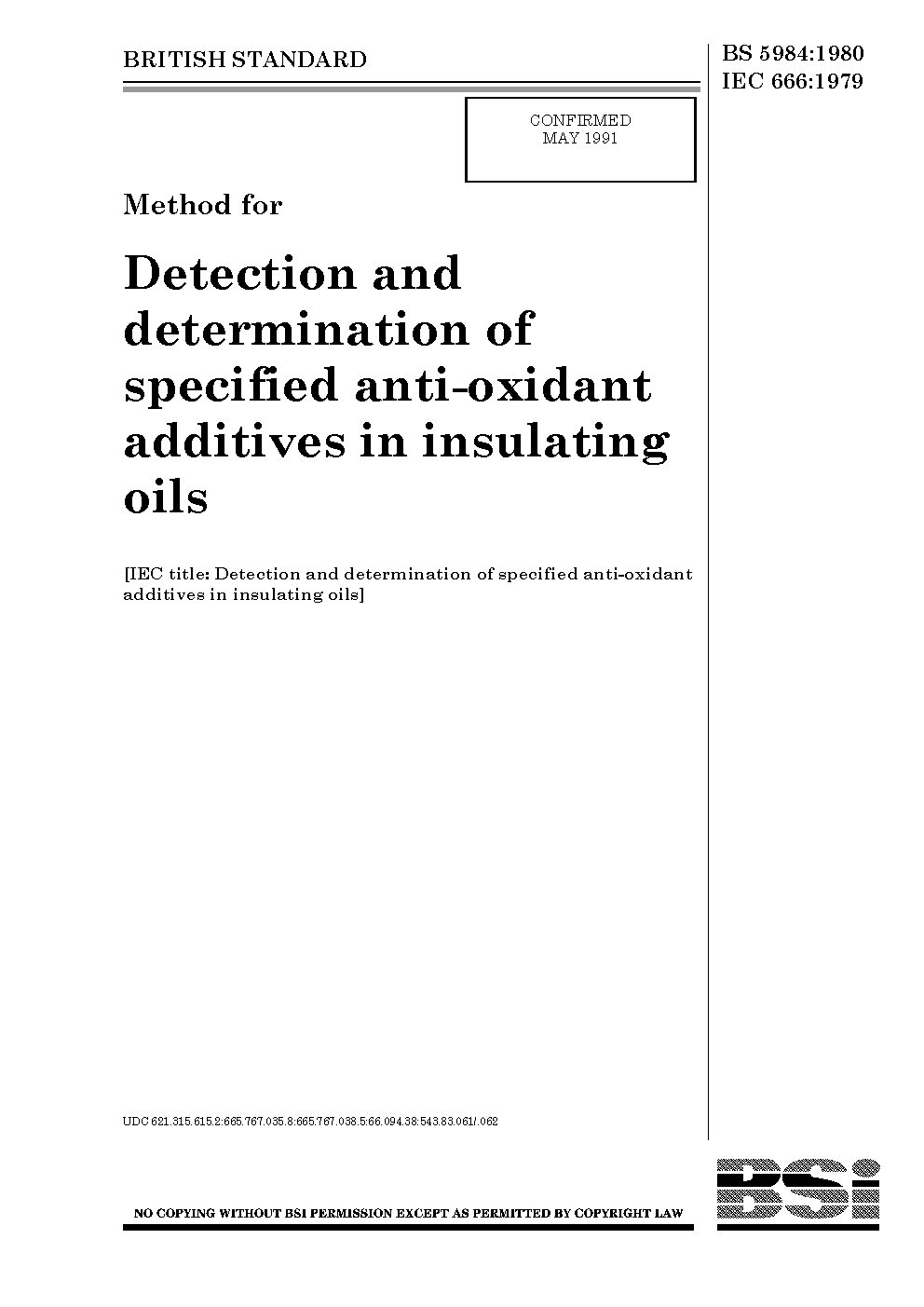 Method for detection and determination of specified anti-oxidant additives in insulating oils
