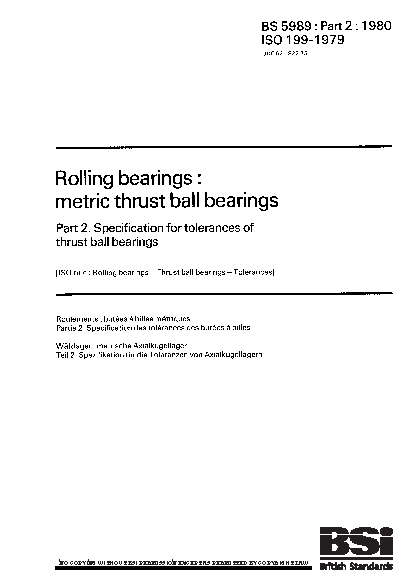 Rolling bearings: metric thrust bearings Specification for tolerances of ball