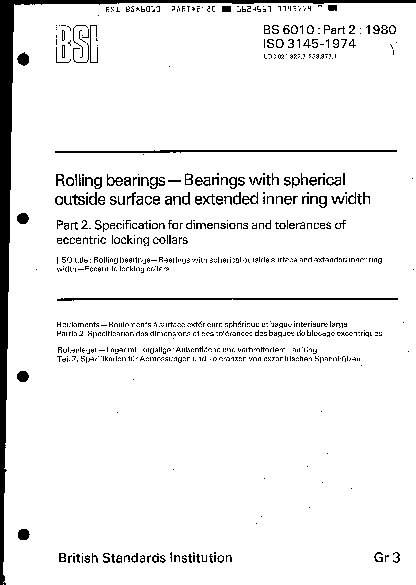 Rolling bearings. Bearings with spherical outside surface and extended inner ring width Specification for insert bearings eccentric locking collars