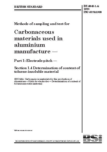 Electrodes;Carbonaceous matter determination;Sampling methods;Insoluble matter determination;Aluminium;Electrorefining;Pitch (petroleum product);Specimen preparation;Gravimetric analysis;Metal refining;Toluene;Precision;Aliphatic compounds;Test equipment;Production metallurgy;Aromatic compounds;Petroleum products