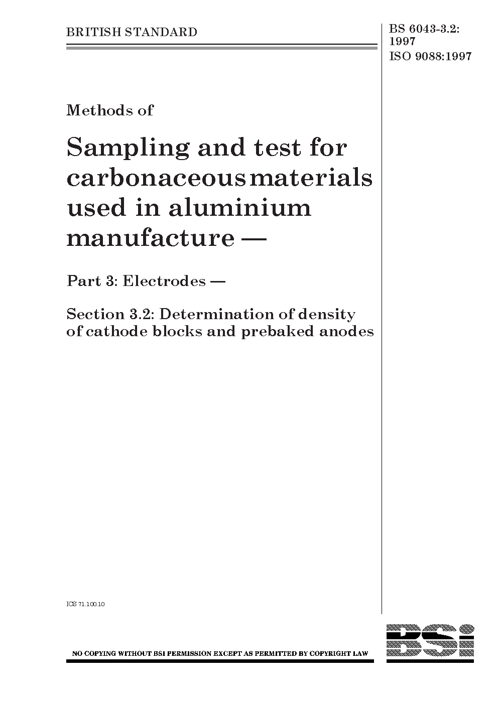 Methods of sampling and test for carbonaceous materials used in aluminium manufacture. Electrodes Determination density cathode blocks prebaked anodes