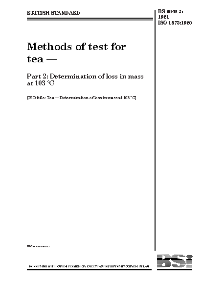 Methods of test for tea Determination loss in mass at 103°C