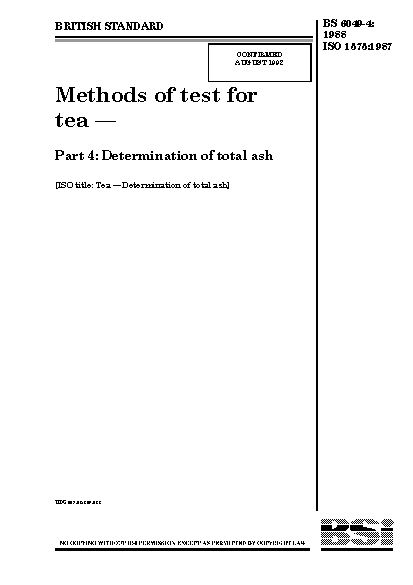 Food crops;Food products;Testing conditions;Reproducibility;Beverages;Ash determination;Chemical analysis and testing;Food testing;Tea
