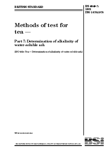 Methods of test for tea Determination alkalinity water-soluble ash