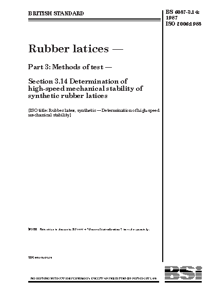 Rubber latices. Methods of test Determination high-speed mechanical stability synthetic rubber latices