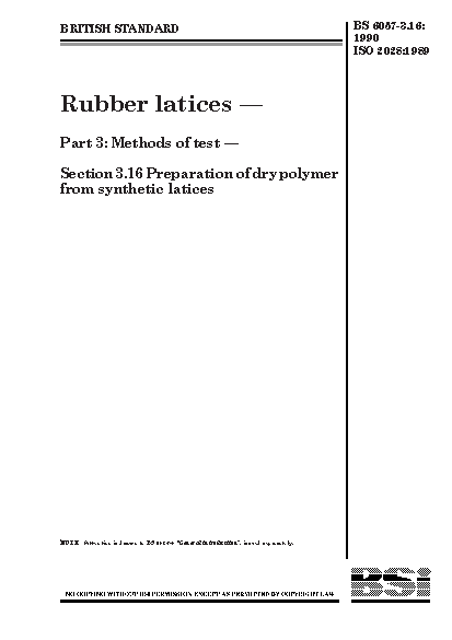 Rubber latices. Methods of test Preparation dry polymer from synthetic latices