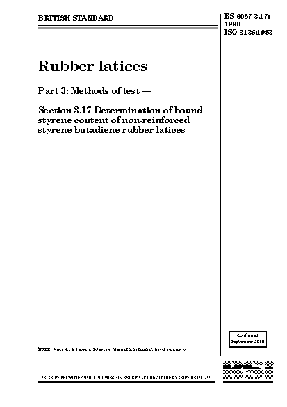 Rubber latices. Methods of test Determination bound styrene content non-reinforced butadiene rubber latices