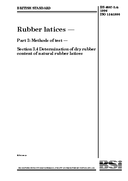 Rubber latices. Methods of test Determination dry rubber content natural latices