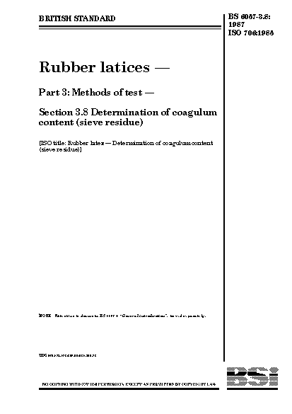 Rubber latices. Methods of test Determination coagulum content (sieve residue)