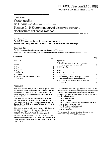 Water quality. Physical, chemical and biochemical methods Determination of dissolved oxygen: electrochemical probe method