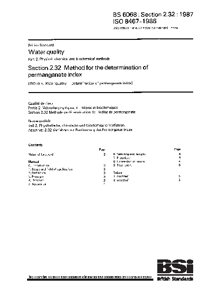 Water quality. Physical, chemical and biochemical methods Method for the determination of permanganate index