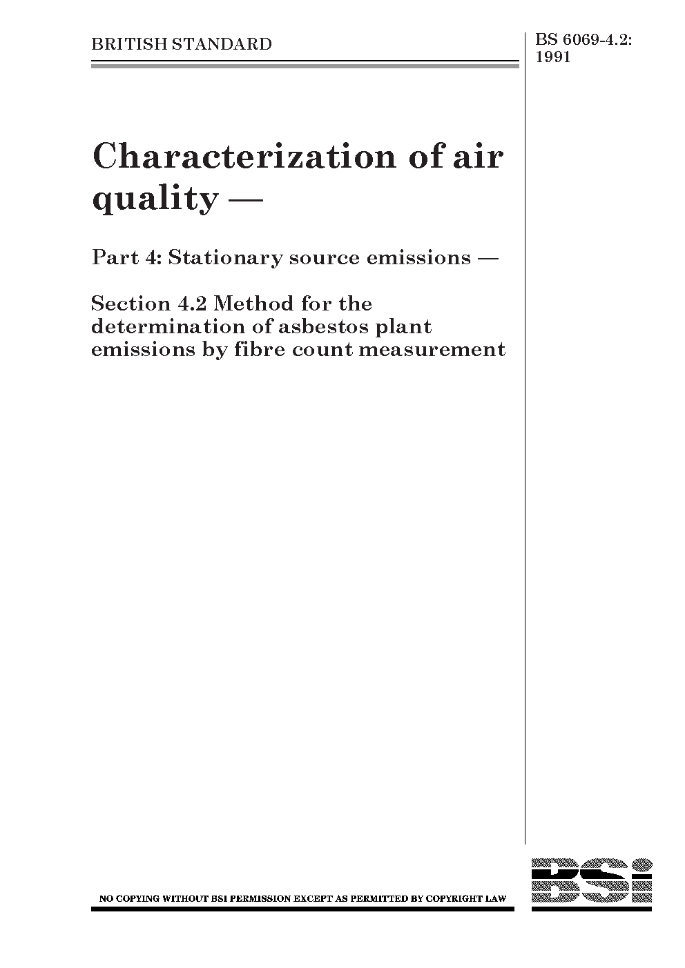 Acceptance (approval);Sampling equipment;Ducting;Asbestos;Sampling methods;Test equipment;Safety measures;Sample location;Industrial air pollutants;Air;Air pollution;Fibres;Microscopic analysis;Quality;Concentration;Filtration;Flues;Accuracy;Chimneys;Particulate air pollutants;Counting