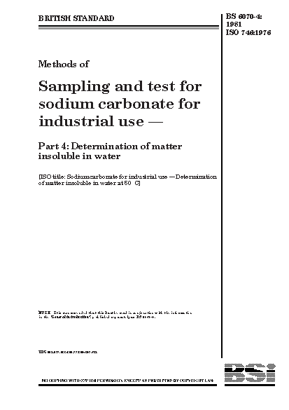 Methods of sampling and test for sodium carbonate industrial use Determination matter insoluble in water