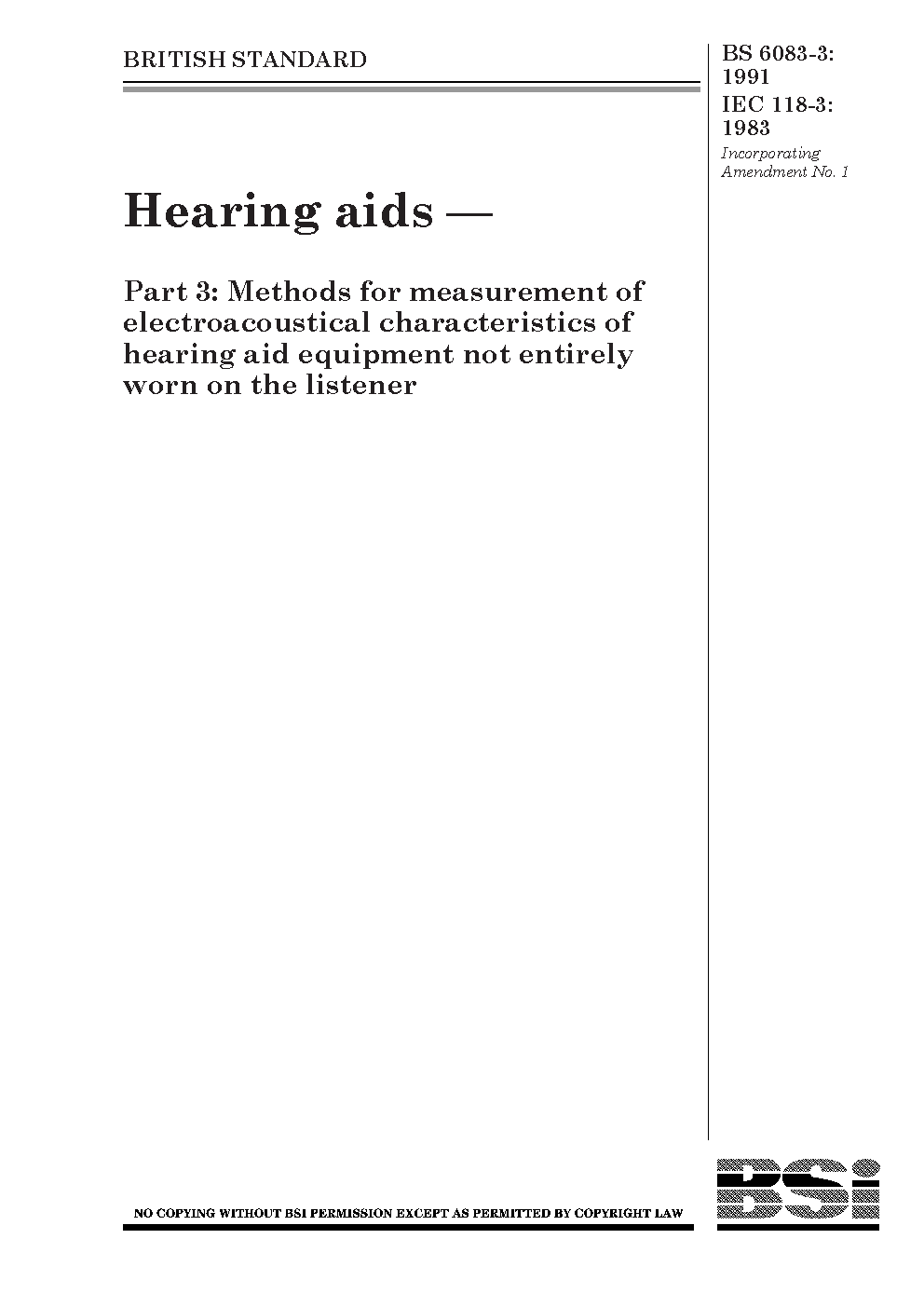 Hearing aids Methods for measurement of electroacoustical characteristics hearing aid equipment not entirely worn on the listener