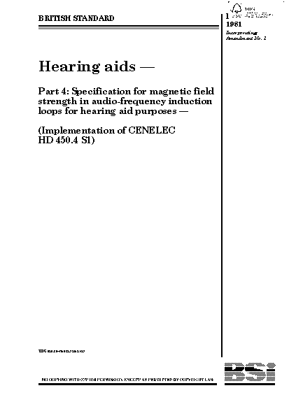 Hearing aids Specification for magnetic field strength in audio-frequency induction loops hearing aid purposes
