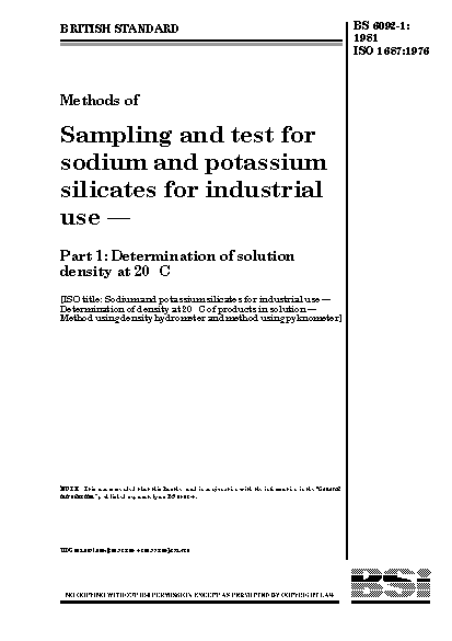 Methods of sampling and test for sodium potassium silicates industrial use Determination solution density at 20°C