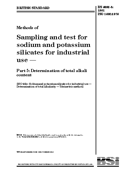 Methods of sampling and test for sodium potassium silicates industrial use Determination total alkali content