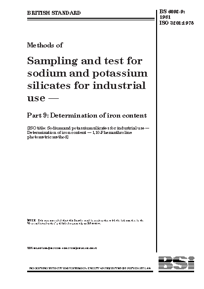 Methods of sampling and test for sodium potassium silicates industrial use Determination iron content