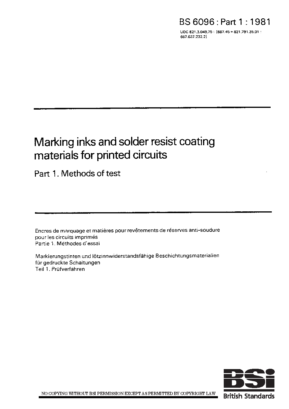 Marking inks and solder resist coating materials for printed circuits Methods of test