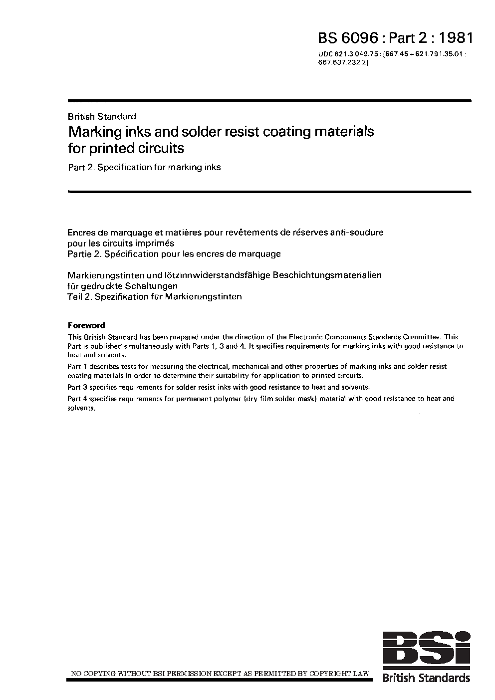 Marking inks and solder resist coating materials for printed circuits Specification marking