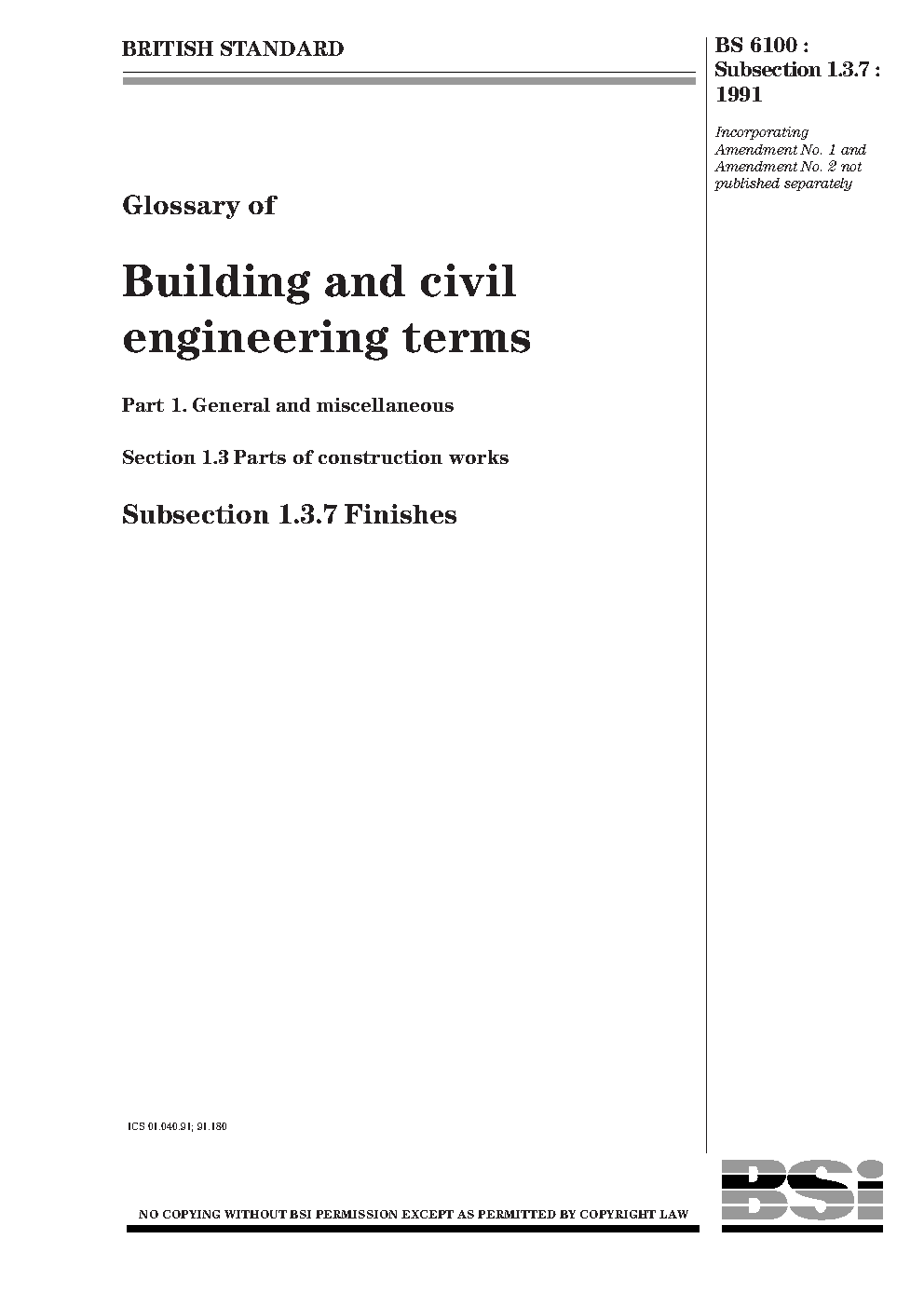 Glossary of building and civil engineering terms. General miscellaneous. Parts construction works Finishes