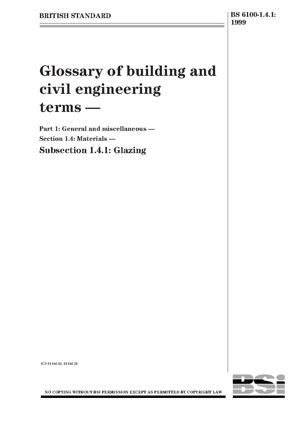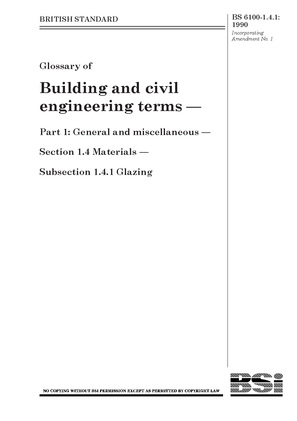 Glossary of building and civil engineering terms. General miscellaneous. Materials Glazing