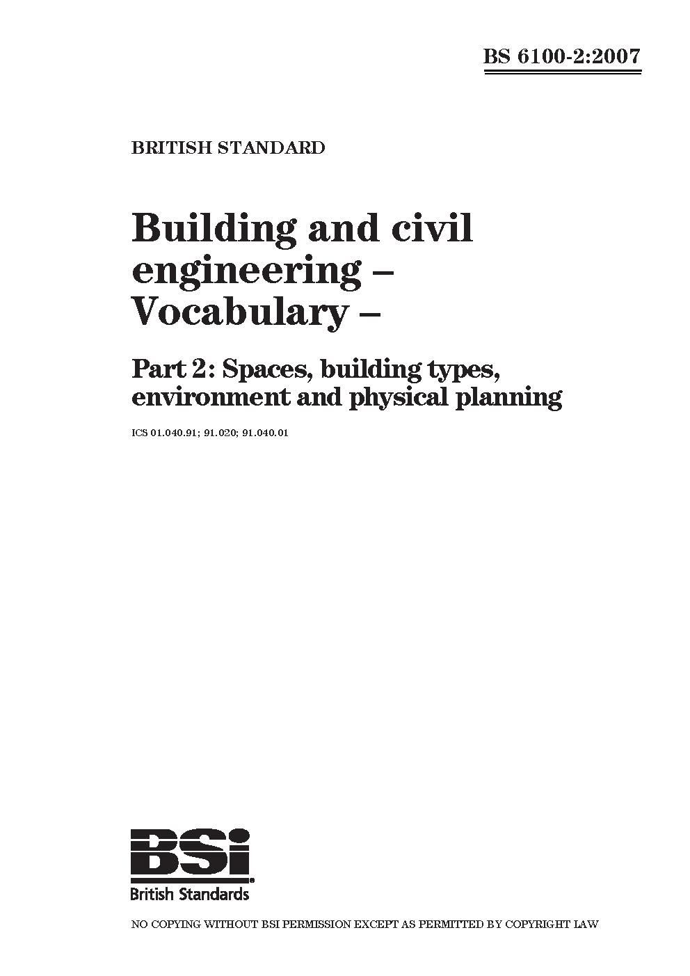 Building and civil engineering. Vocabulary Spaces, building types, environment physical planning