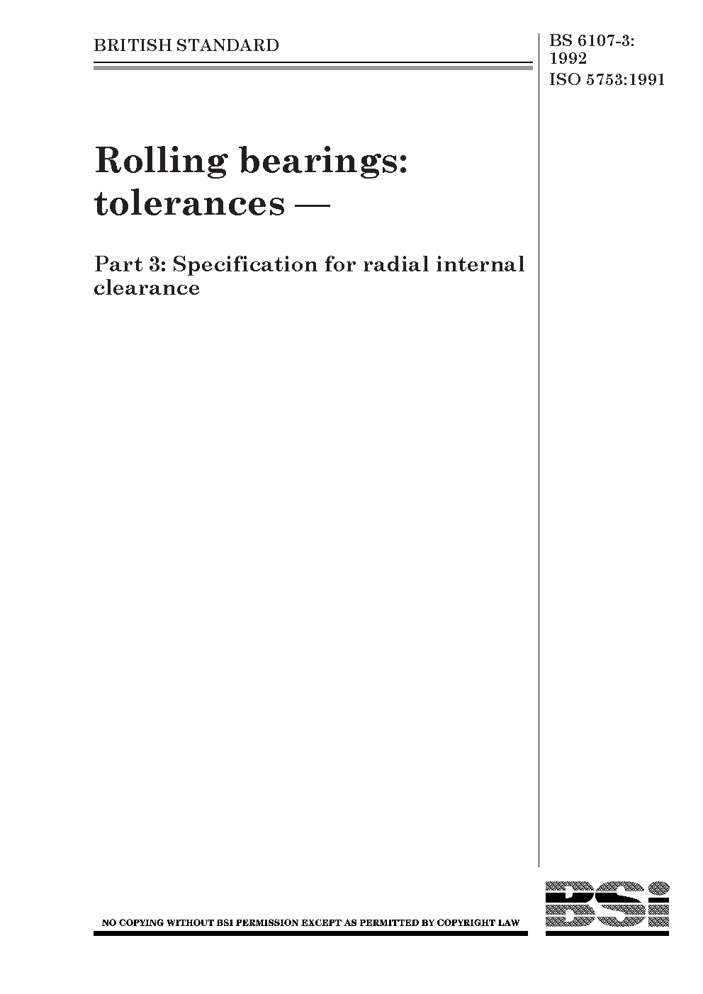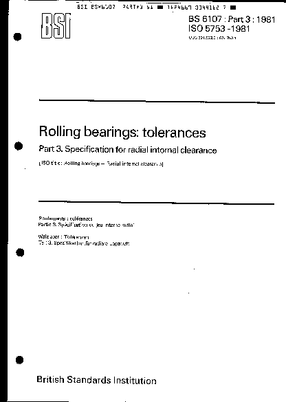 Rolling bearings: tolerances Specifications for radial internal clearance