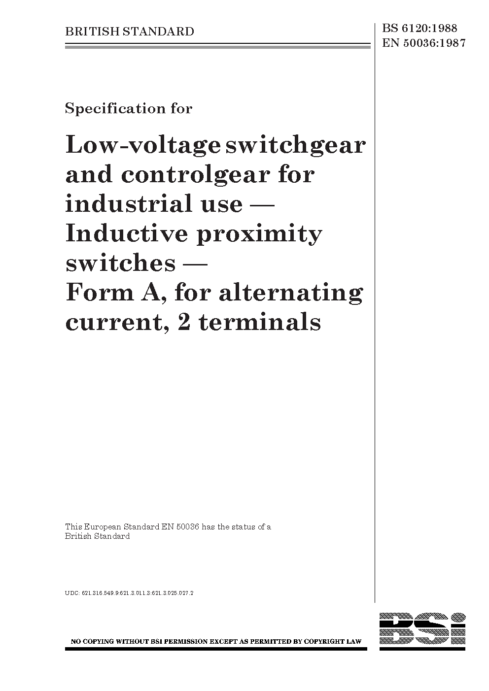 Specification for low voltage switchgear and controlgear for industrial use. Inductive proximity switches. Form A, for alternating current, 2 terminals
