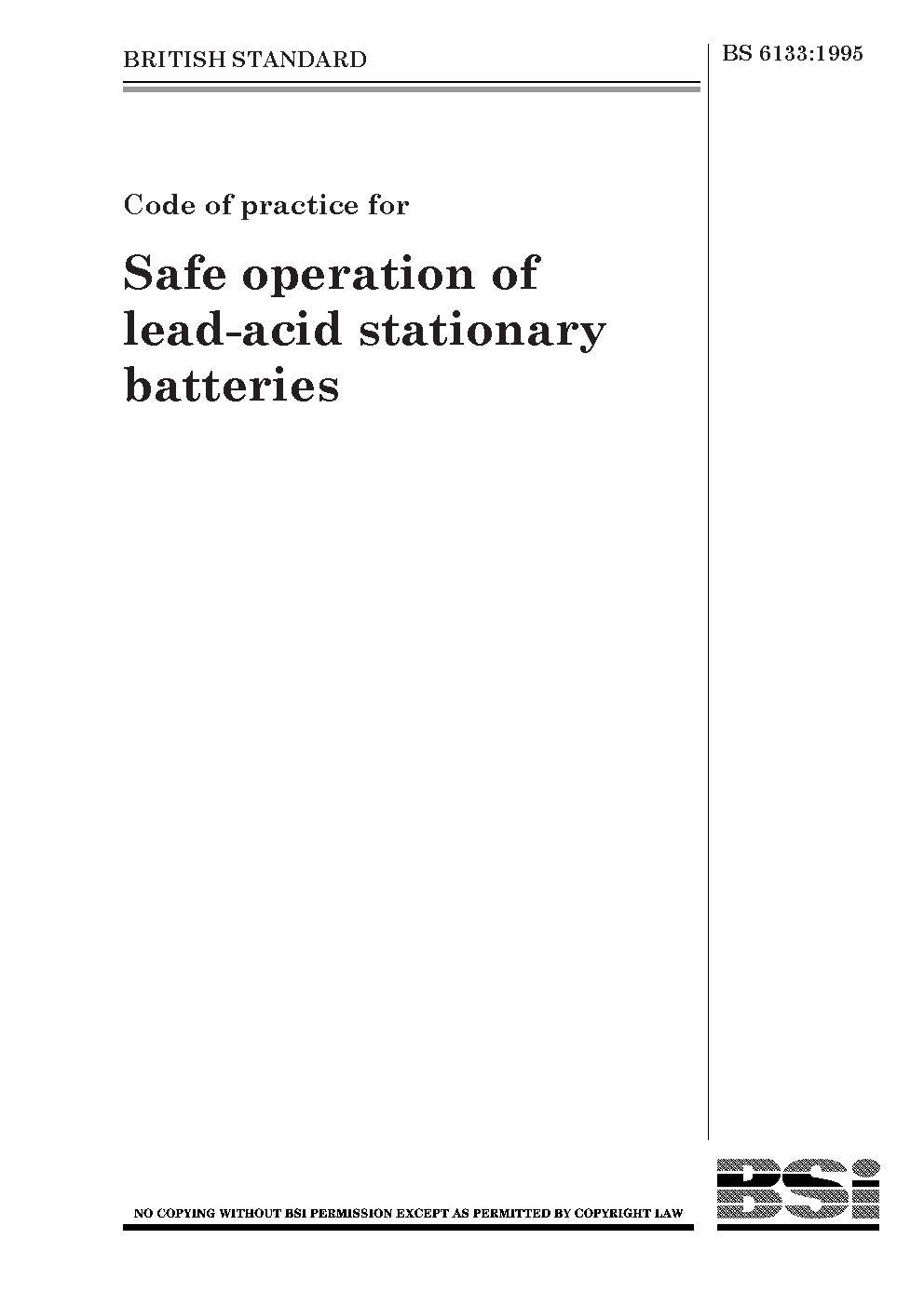Code of practice for safe operation of lead-acid stationary batteries