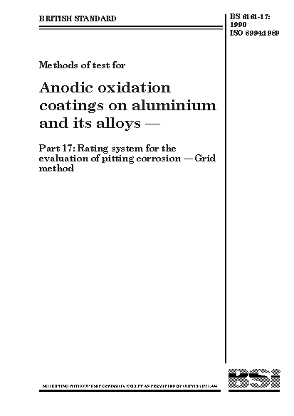 Methods of test for anodic oxidation coatings on aluminium and its alloys Rating system the evaluation pitting corrosion. Grid method