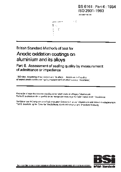 Methods of test for anodic oxidation coatings on aluminium and its alloys Assessment sealing quality by measurement admittance or impedance