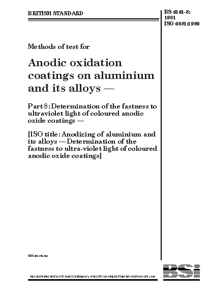 Methods of test for anodic oxidation coatings on aluminium and its alloys Determination the fastness to ultraviolet light coloured oxide