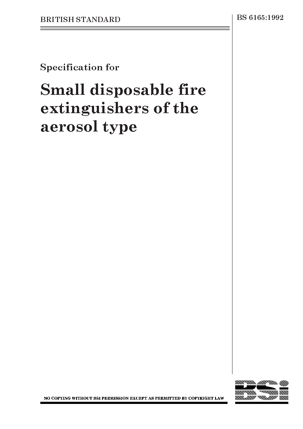 Specification for small disposable fire extinguishers of the aerosol type