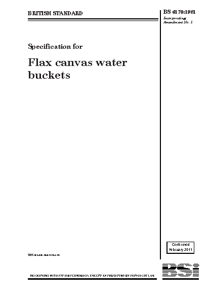 Canvas;Thread (textiles);Leak tests;Textile testing;Water;Flax;Buckets (containers);Dimensions;Strength of materials;Design;Sewing;Marking;Breaking load;Textile making-up processes;Handles