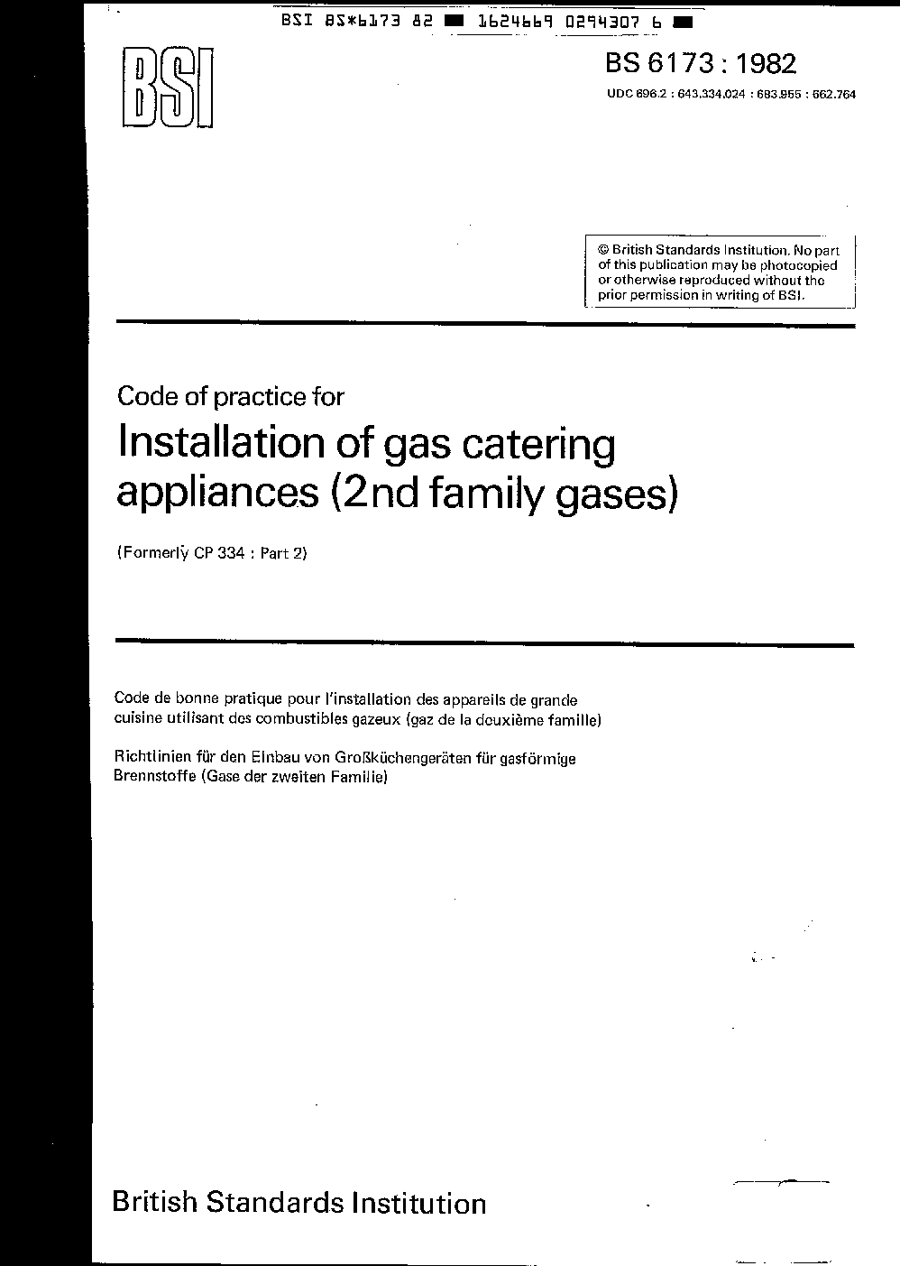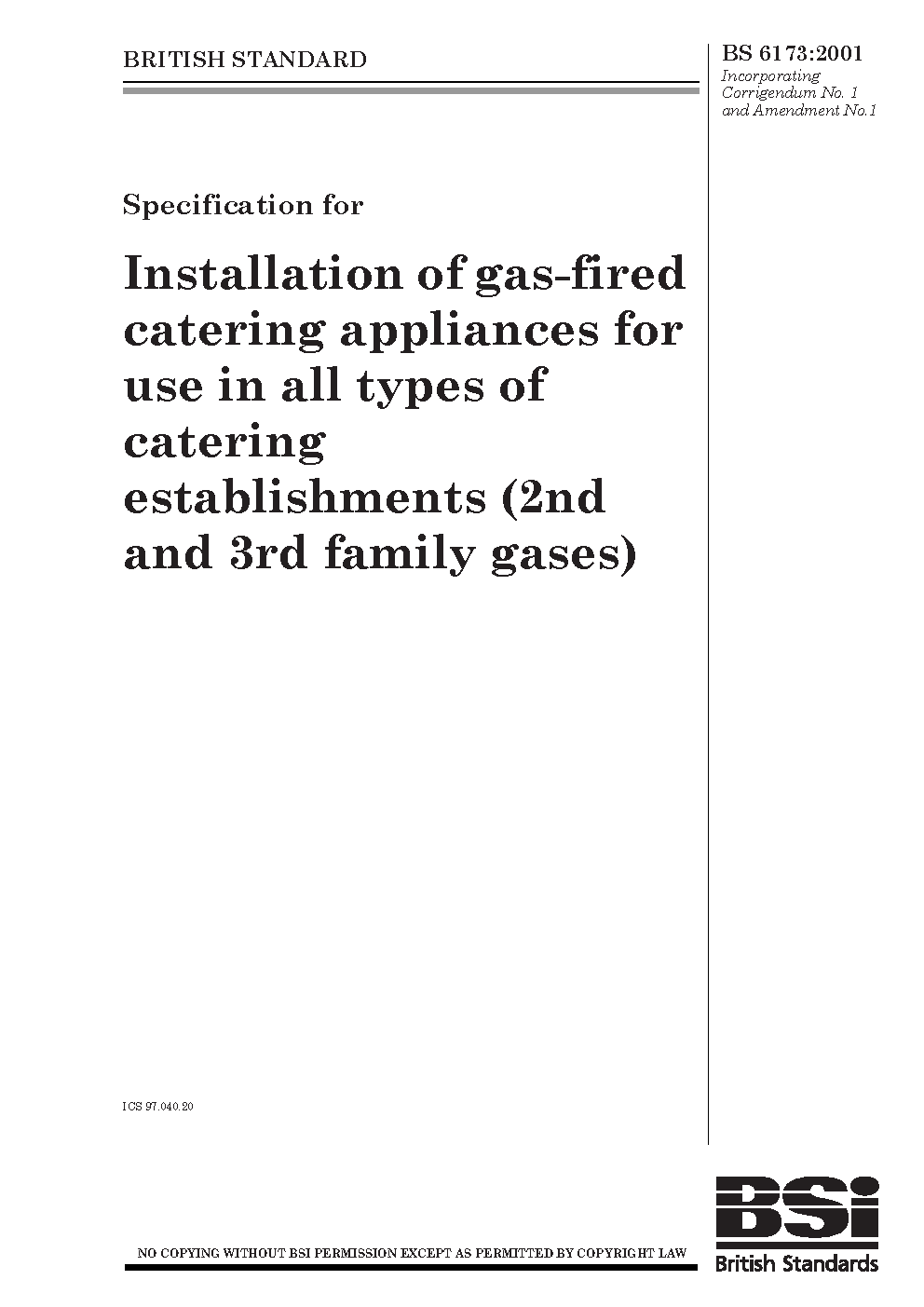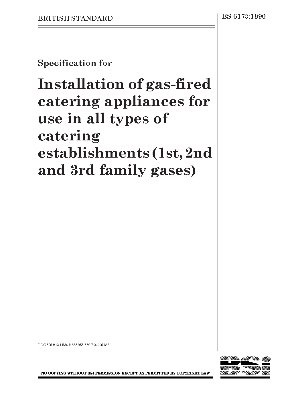 Specification for installation and maintenance of gas-fired catering appliances for use in all types of catering establishments (2nd and 3rd family gases)