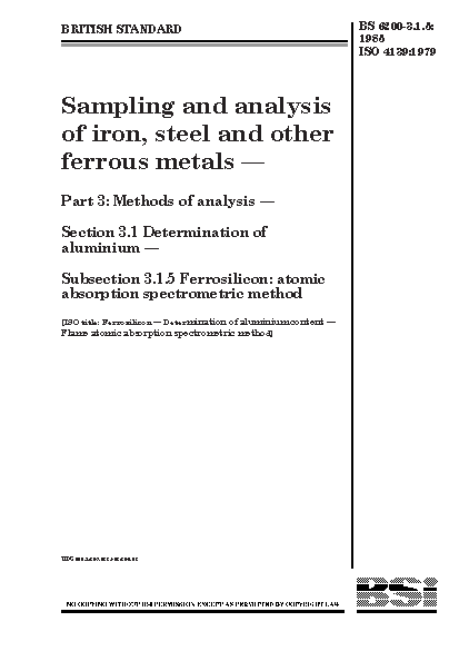 Absorption spectrophotometry;Flame photometry;Chemical analysis and testing;Aluminium;Spectrophotometry;Ferrosilicon;Calibration;Ferro-alloys;Safety measures;Silicon-containing alloys;Atomic absorption spectrophotometry;Determination of content