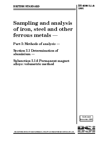 Sampling and analysis of iron, steel other ferrous metals. Methods analysis. Determination aluminium Permanent magnet alloys: volumetric method