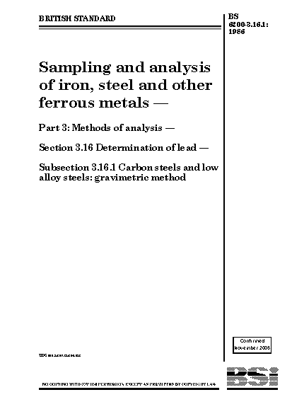 Sampling and analysis of iron, steel other ferrous metals. Methods analysis. Determination lead Carbon steels low alloy steels: gravimetric method