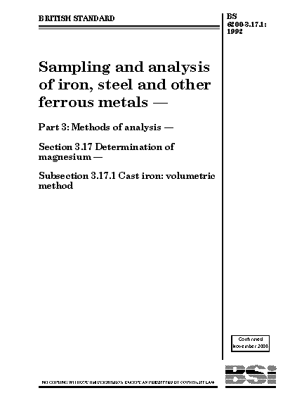 Magnesium;Solvent extraction methods;Cast-iron;Volumetric analysis;Spheroidal-graphite cast-iron;Reproducibility;Chemical analysis and testing;Determination of content