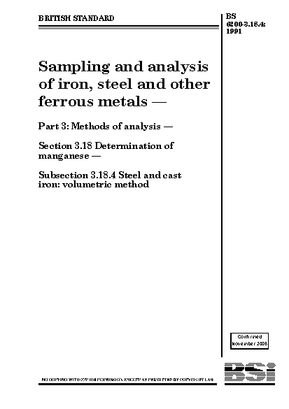 Oxidation methods;Volumetric analysis;Ferrous alloys;Steels;Cast-iron;Determination of content;Testing conditions;Chemical analysis and testing;Precision;Manganese