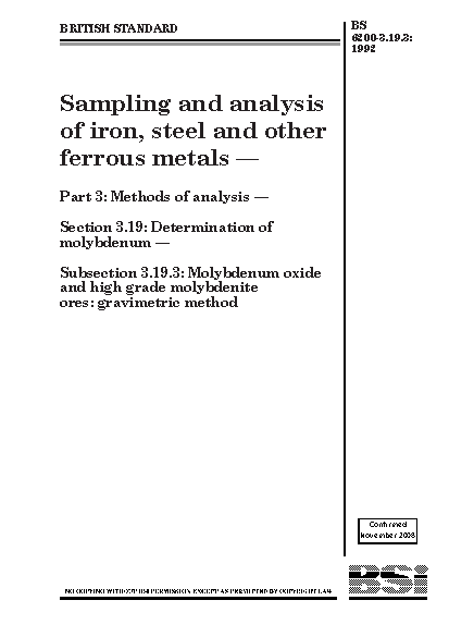Sampling and analysis of iron, steel other ferrous metals. Methods analysis. Determination molybdenum Molybdenum oxide high grade molybdenite ores: gravimetric method