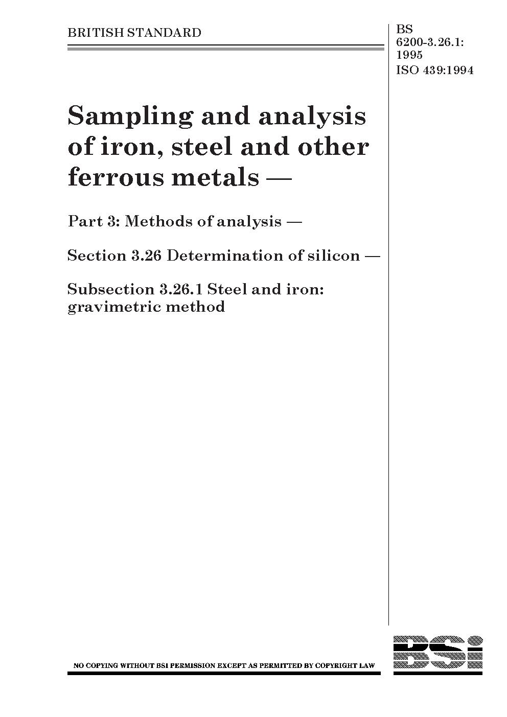Sampling and analysis of iron, steel other ferrous metals. Methods analysis. Determination silicon Steel iron: gravimetric method.