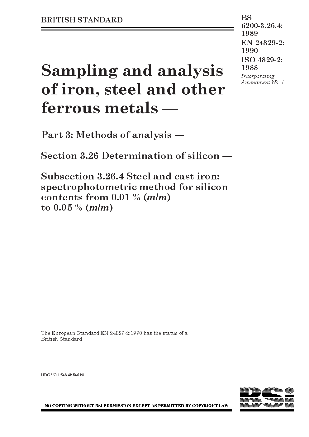 Sampling and analysis of iron, steel other ferrous metals. Methods analysis. Determination silicon Steel cast iron: spectrophotometric method for contents from 0.01% (m/m) to 0.05%