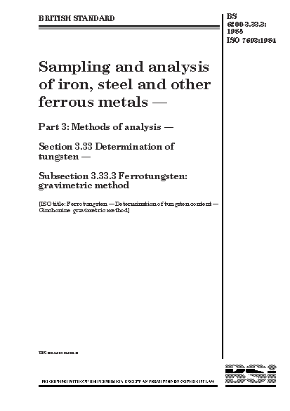 Sampling and analysis of iron, steel other ferrous metals. Methods analysis. Determination tungsten Ferrotungsten: gravimetric method