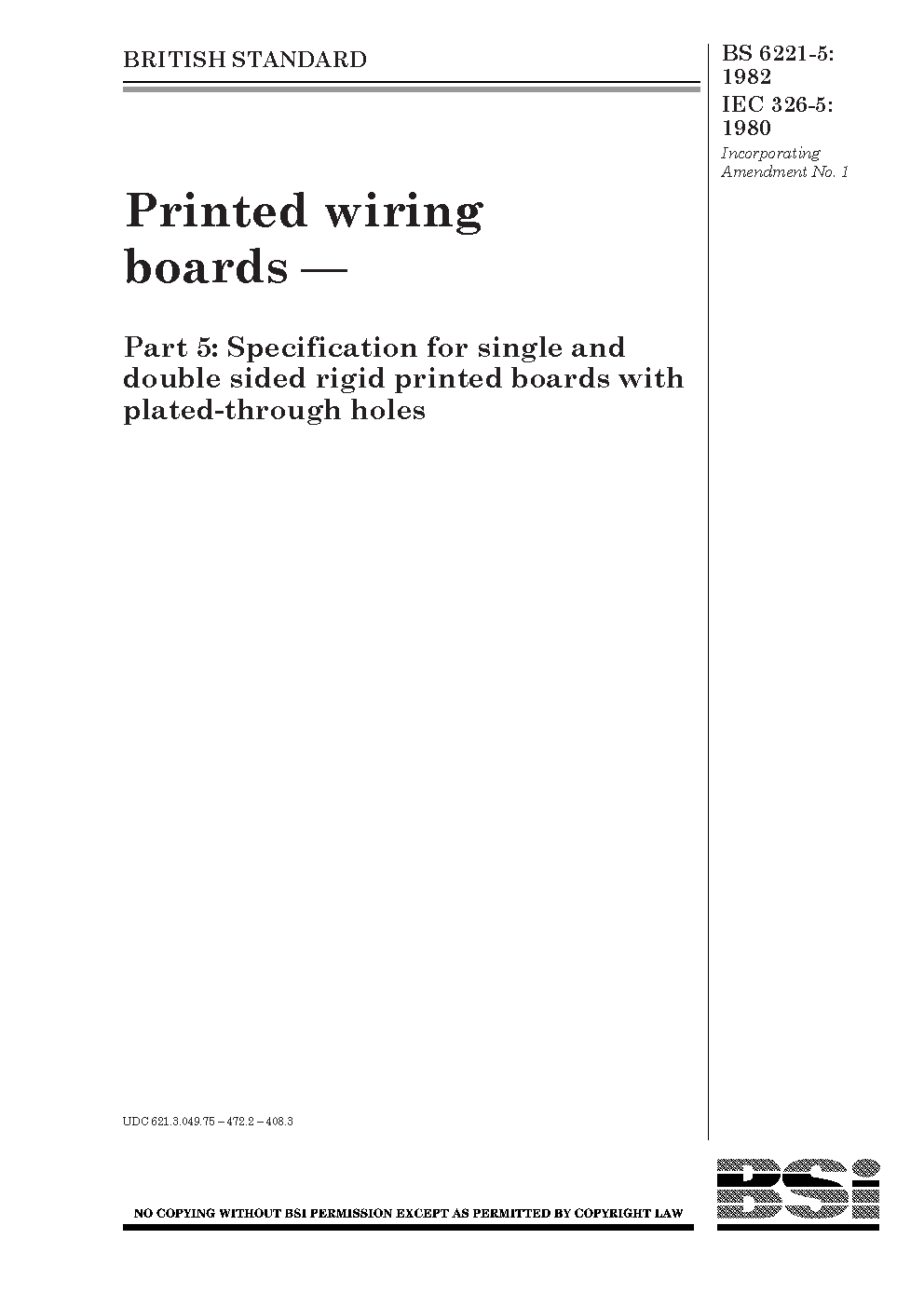 Printed wiring boards Specification for single and double sided rigid printed with plated-through holes