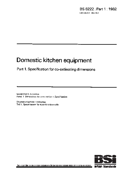 Domestic kitchen equipment Specification for co-ordinating dimensions
