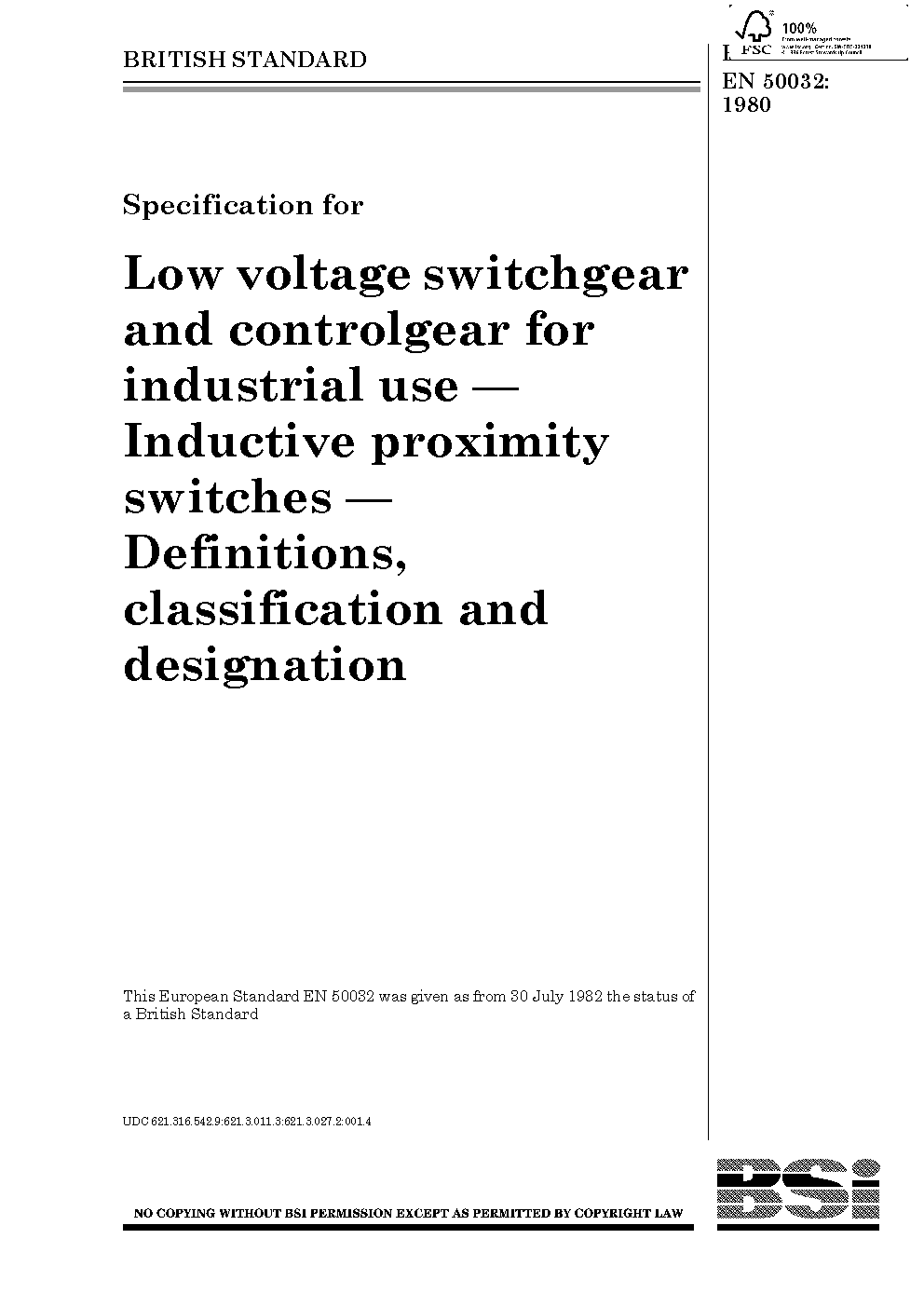 Specification for low voltage switchgear and controlgear for industrial use. Inductive proximity switches. Definitions, classification and designation